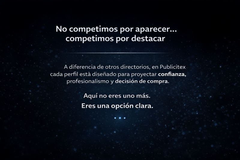 En un mercado digital saturado de informalidad, el perfil de Publicitex sirve como una certificación de que tu empresa es real, estable y profesional.